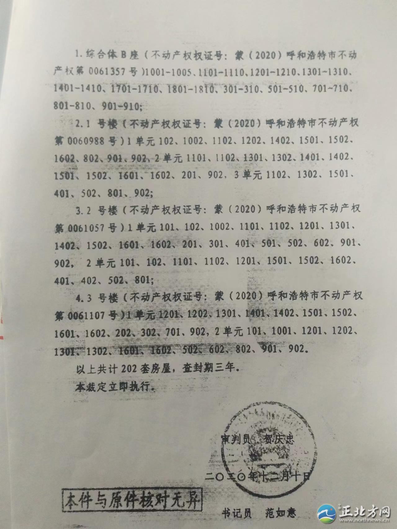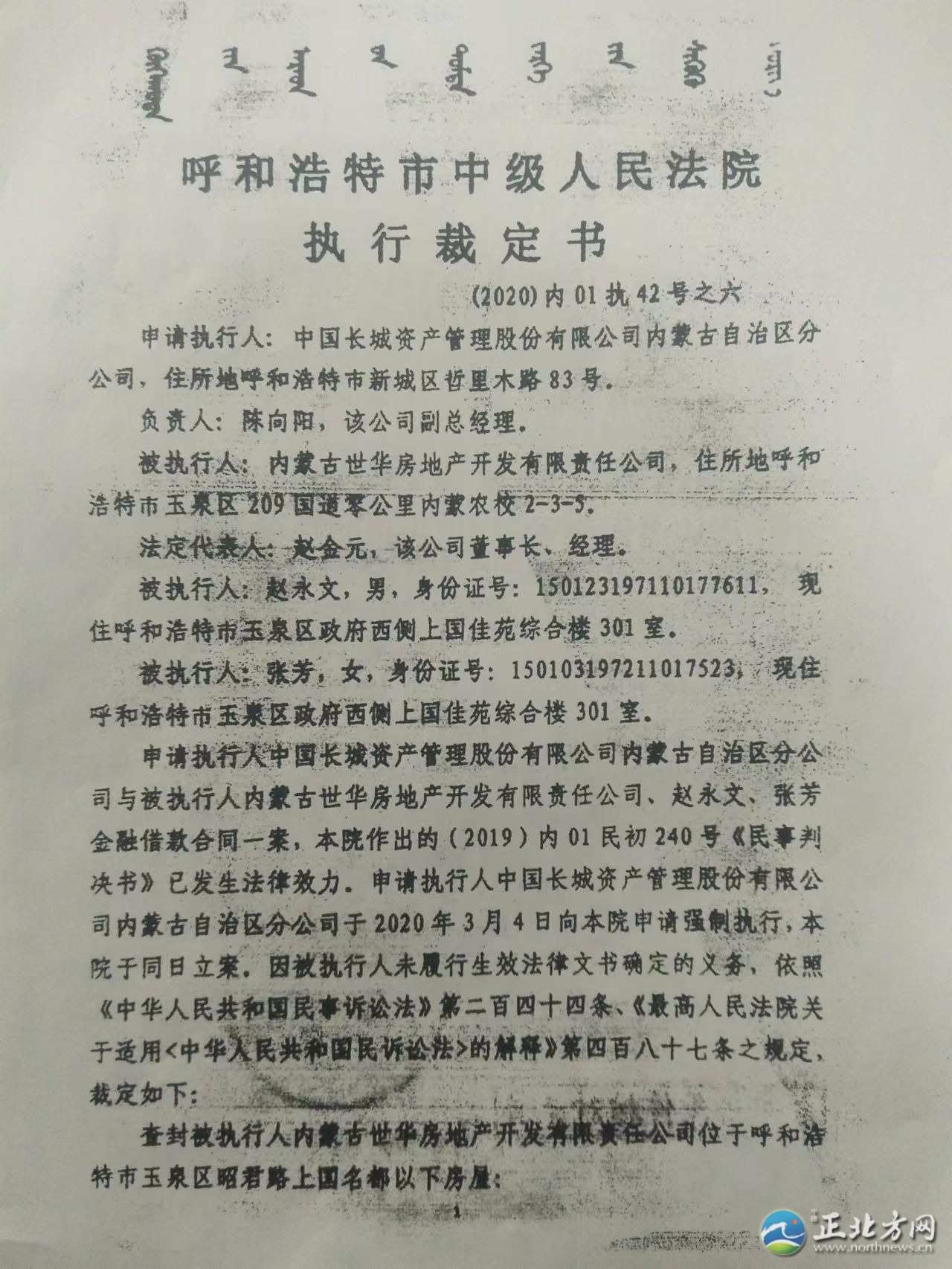 “我們小區(qū)2019年交房,2021年11月份,小區(qū)終于能辦房本了??墒窃谵k理房本的過程中,我們得知小區(qū)住宅樓100多套房子被多個法院查封了,小區(qū)辦房本的事也就停了下來。現(xiàn)在,我們找開發(fā)商內(nèi)蒙古世華房地產(chǎn)開發(fā)有限責(zé)任公司(以下簡稱世華房地產(chǎn)公司)問詢?yōu)槭裁捶课荼徊榉?,何時能夠解封,可是開發(fā)商躲著不見我們!這事究竟歸誰管呢?”近日,呼和浩特市玉泉區(qū)上國名都業(yè)主向北方新報正北方網(wǎng)記者反映。