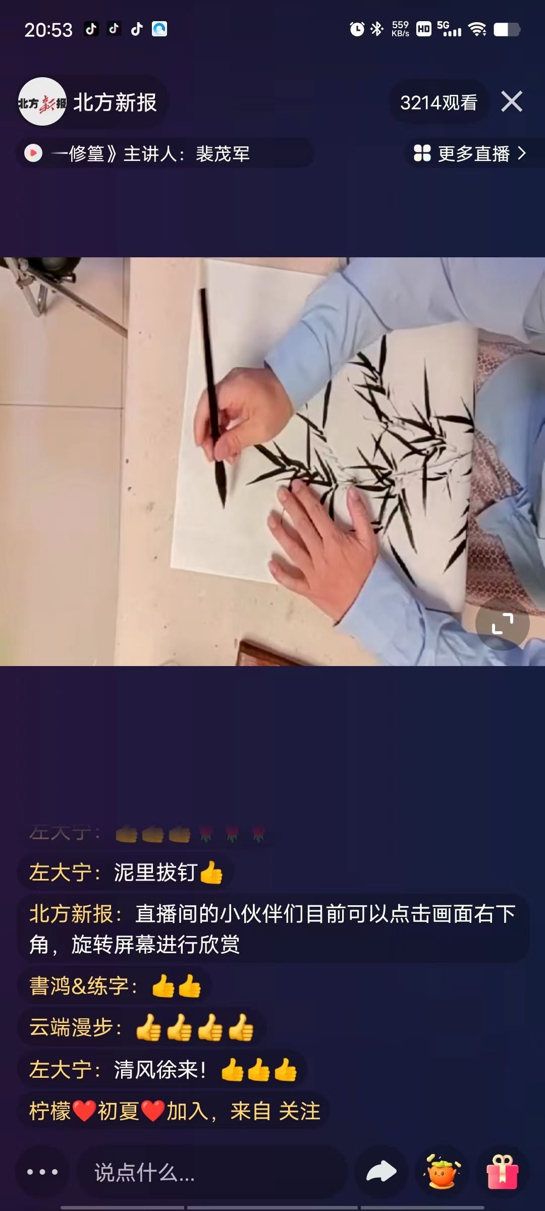 “我們這節(jié)課學習的是《明代花鳥畫一一修篁》……”10月13日晚,呼和浩特市書畫院花鳥畫講師裴茂軍線上課程開講,給廣大美術(shù)愛好者帶來一節(jié)有趣且實用的課程,備受網(wǎng)友喜歡。