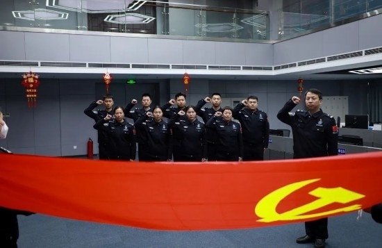 圖為陳靜波帶領(lǐng)“陳靜波云端前哨突擊隊(duì)”隊(duì)員開展重溫入黨誓詞活動(dòng)。