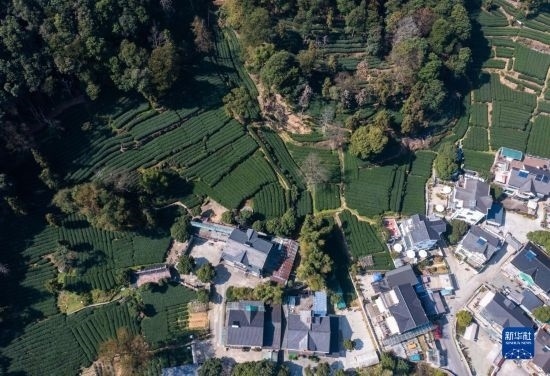 3月13日,空中俯瞰梅家塢村的西湖龍井茶地(無(wú)人機(jī)照片)。