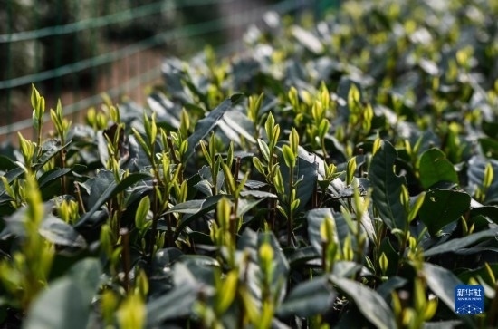 龍井村茶山上長(zhǎng)勢(shì)喜人的西湖龍井(3月13日攝)。