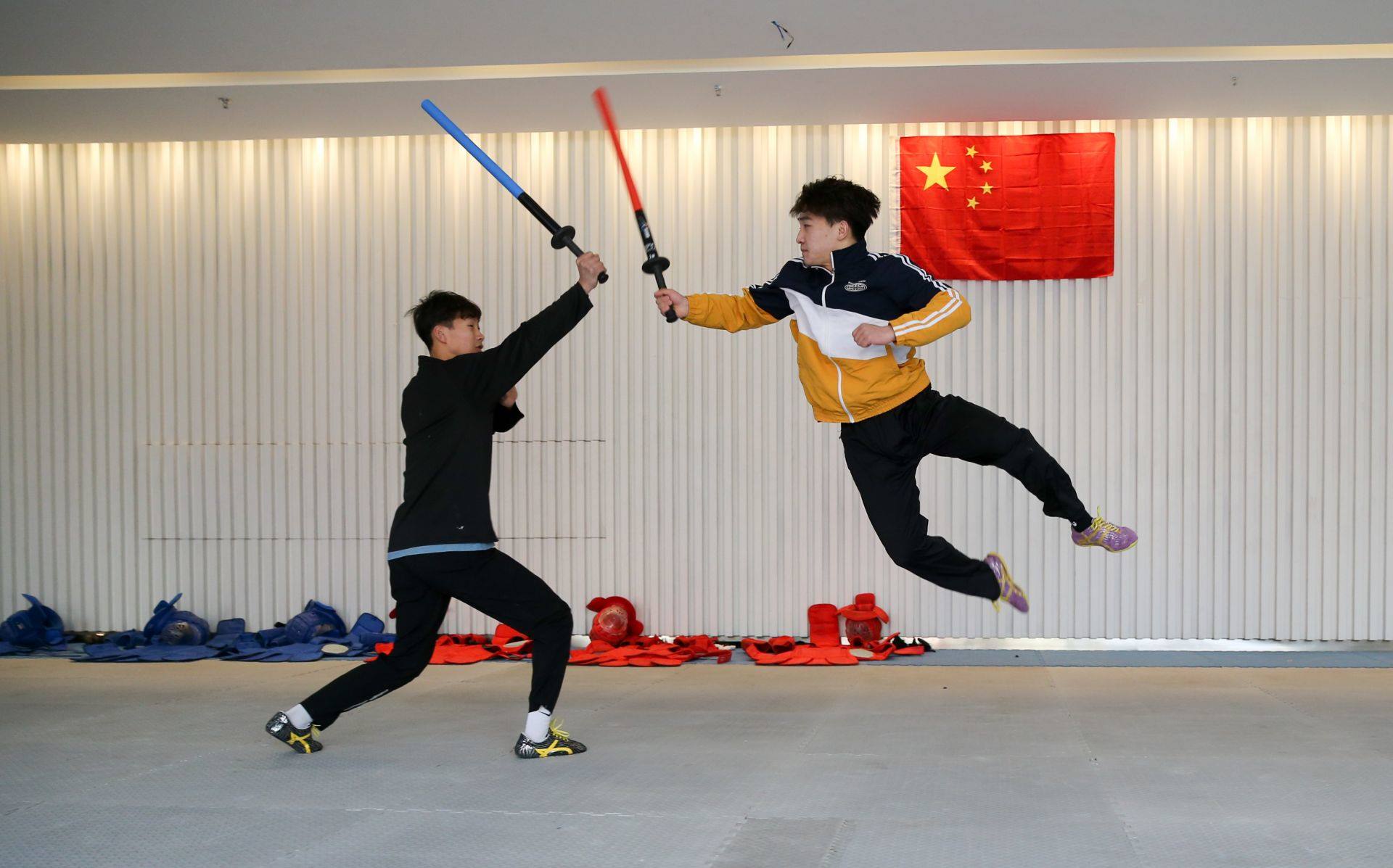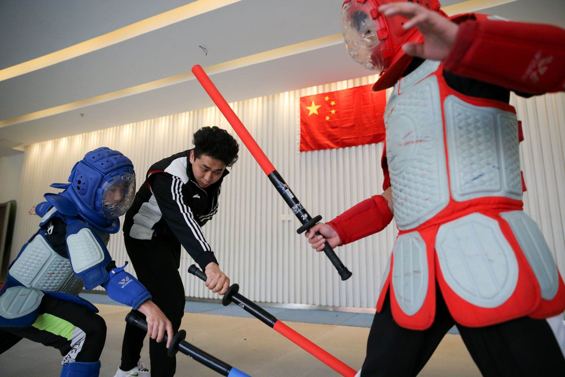 隊(duì)員手持一柄海綿包裹的短劍,時(shí)而閃躲騰挪,時(shí)而沖刺進(jìn)攻,動作行云流水。一招一式間盡顯力量和速度之美,相互對抗擊打時(shí)發(fā)出“啪啪”的聲響更是令人熱血沸騰……如果說哪一項(xiàng)運(yùn)動能夠滿足人們對俠客的終極幻想,非武術(shù)兵道莫屬。3月21日,為備戰(zhàn)全國武術(shù)兵道錦標(biāo)賽,內(nèi)蒙古唯一一支武術(shù)兵道隊(duì)在呼和浩特市體育運(yùn)動學(xué)校展開訓(xùn)練。