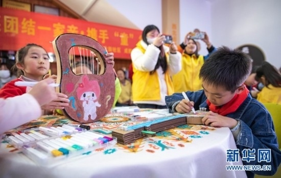 8歲的土旦卡卓是來自青海玉樹藏族自治州的藏族小朋友,她在為手中紙質(zhì)瑤琴涂畫的同時也學習著其他民族的文化風俗。