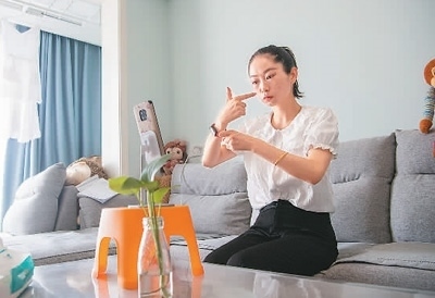 90后聽(tīng)障女孩譚婷通過(guò)直播平臺(tái)為聽(tīng)障人士解答法律問(wèn)題。新華社記者 唐 奕攝