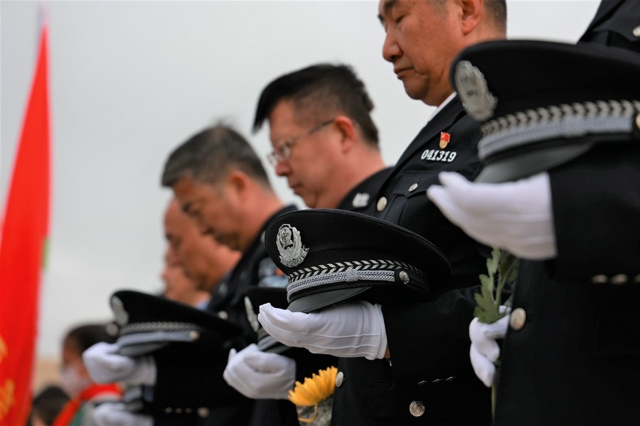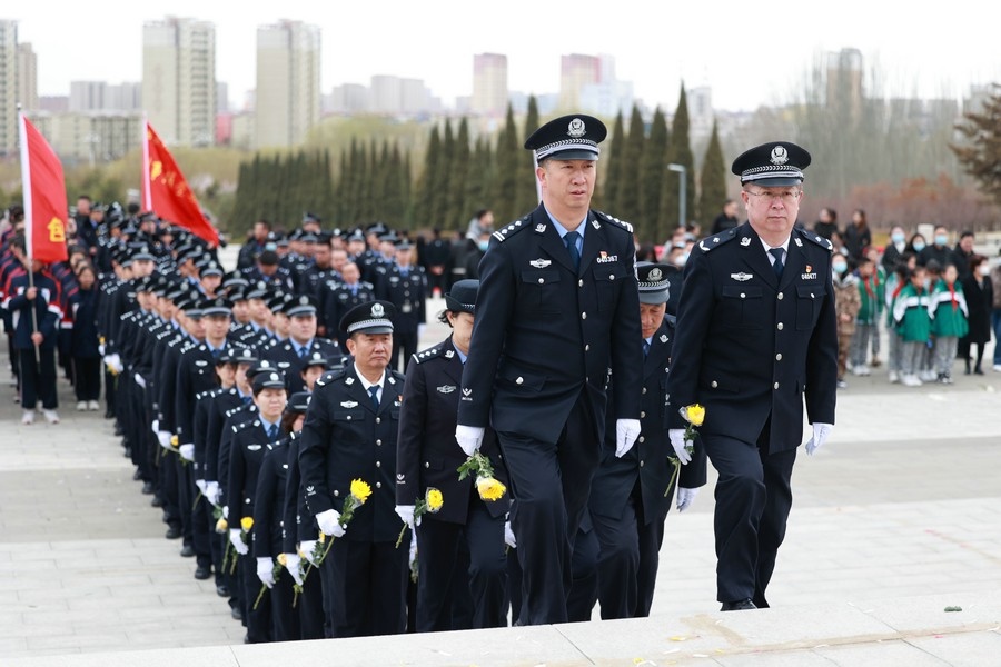 上午10時,60名干部民警整齊列隊,警容嚴整,脫帽肅立,向為人民公安事業(yè)英勇獻身的英烈默哀,緬懷他們的豐功偉績,寄托對革命先烈的無限哀思。伴著肅穆的《獻花曲》,民警們依次瞻仰紀念碑并敬獻鮮花。隨后,全體民警面向黨旗和烈士紀念碑,高舉右拳,以錚錚誓言筑牢理想信念,以拳拳初心踐行為民宗旨。(王鵬)