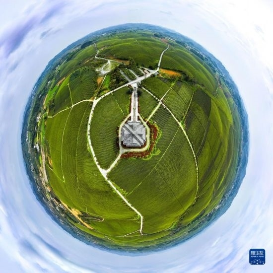 4月4日拍攝的遵義市湄潭縣永興鎮(zhèn)“萬畝茶?!保o人機(jī)全景拼接照片)。
