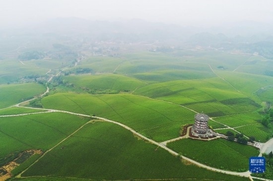 2021年4月12日拍攝的貴州省湄潭縣的“萬畝茶海”風(fēng)光(無人機(jī)照片)。