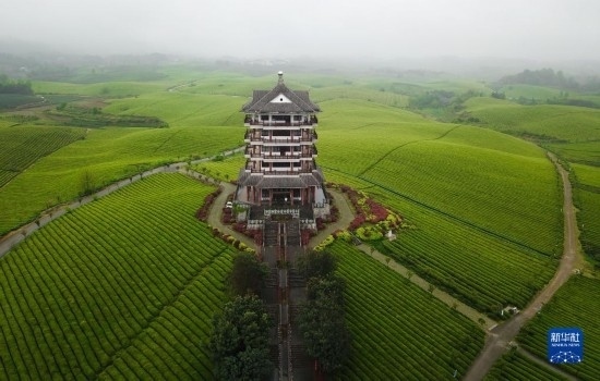 這是貴州省湄潭縣的“萬畝茶海”風(fēng)光(無人機(jī)照片,2021年4月12日攝)。