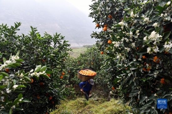 眼下,有“中國(guó)臍橙之鄉(xiāng)”美譽(yù)的三峽庫(kù)區(qū)湖北省秭歸縣長(zhǎng)江兩岸橙花盛開(kāi),晚熟臍橙掛滿(mǎn)枝頭,花果同樹(shù)的橙樹(shù)與峽江景觀相映如畫(huà)。