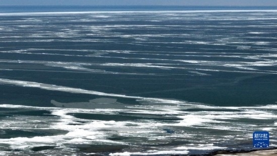 這是4月15日拍攝的青海湖一角(無人機(jī)照片)。