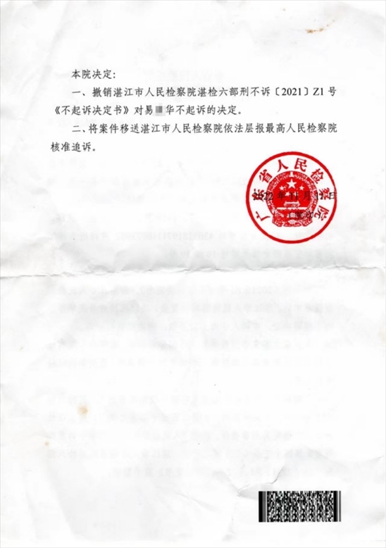 ·廣東省檢復(fù)查“潛逃27年命案嫌犯被不起訴”:撤銷,報(bào)最高檢核準(zhǔn)追訴。