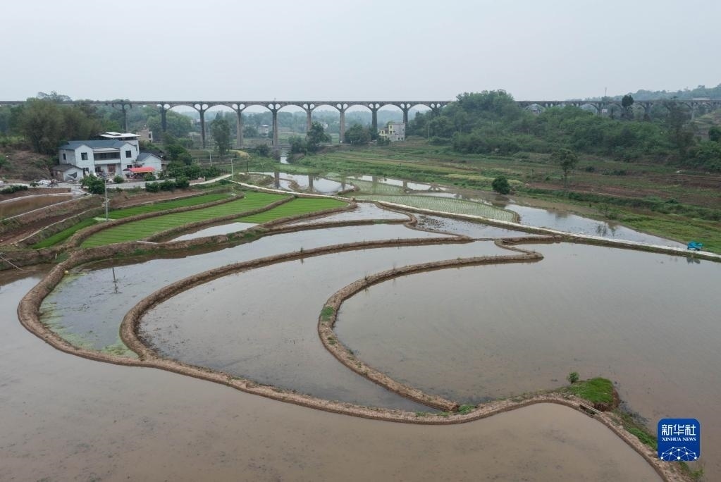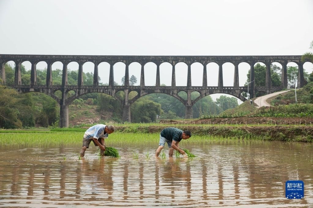 目前,四川省瀘縣正值插秧時節(jié),有“人工天河”之稱的瀘縣引水渡槽越過山丘、穿過農田,仍在引水灌溉中發(fā)揮重要作用。