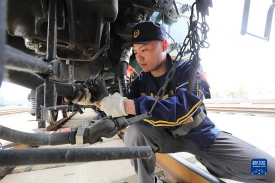 4月28日,中國(guó)鐵路上海局集團(tuán)有限公司徐州站的鐵路連結(jié)員在核對(duì)現(xiàn)車編組。