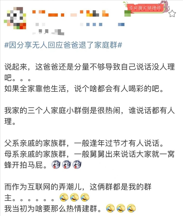 因分享無人回應(yīng),爸爸退了家庭群!你的家庭群還熱鬧嗎?