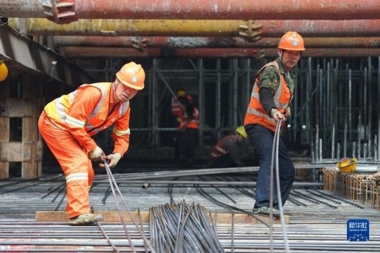 5月3日,中建八局的工人在合肥地鐵7號(hào)線蓮花路站工程現(xiàn)場(chǎng)施工。