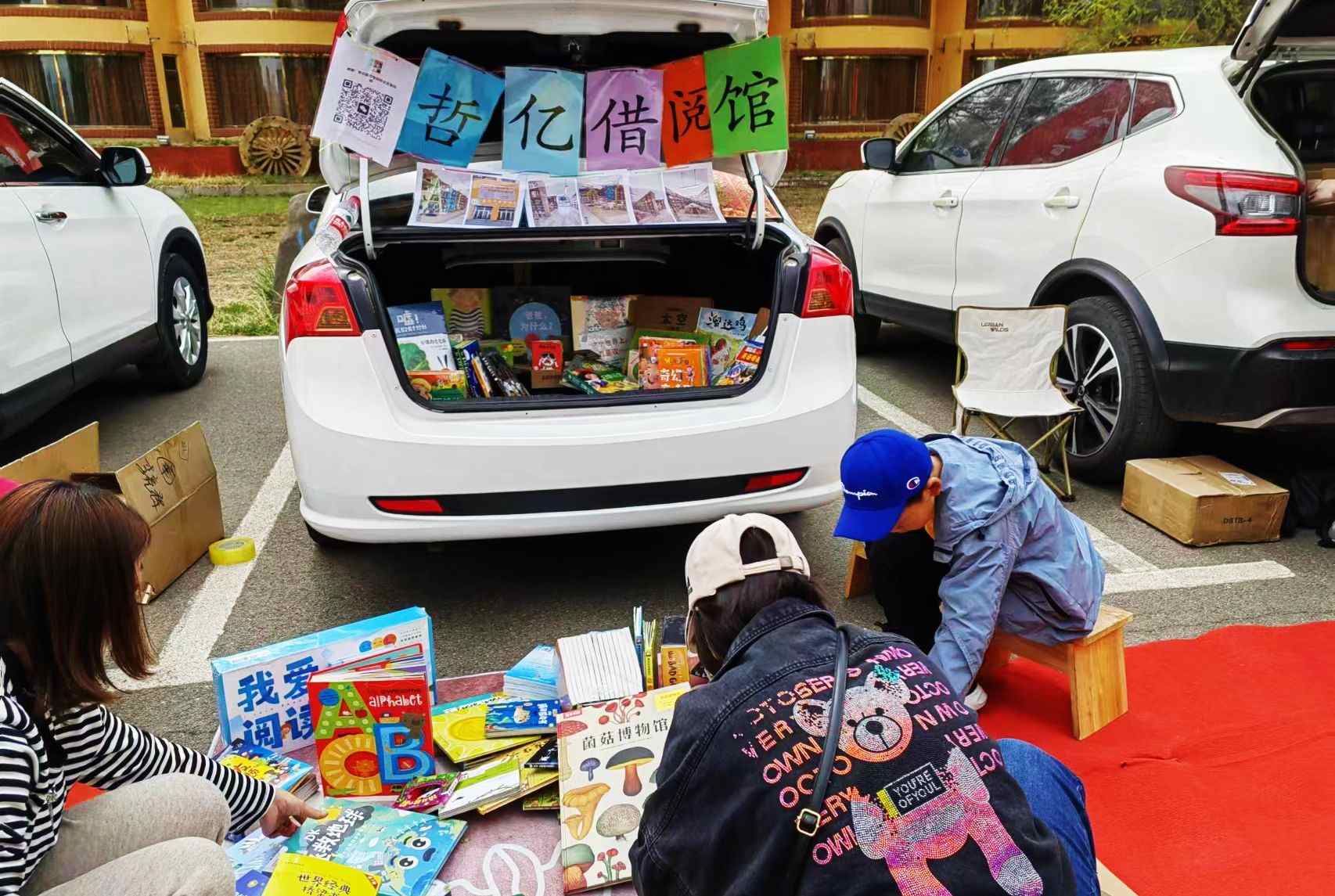 讀書愛好者們在后備箱圖書市集選購圖書