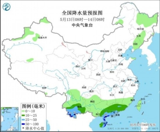 全國降水量預報圖(5月12日08時-13日08時)
