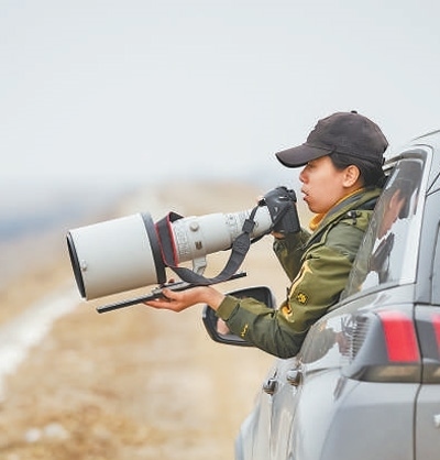 鴨舌帽、沖鋒衣、運動鞋,是譚文卓野外鳥類監(jiān)測的“標(biāo)配”。單筒望遠鏡用來觀測,長焦鏡頭及時拍攝,計數(shù)器統(tǒng)計鳥類數(shù)量,最后還要當(dāng)場記錄相關(guān)數(shù)據(jù)。