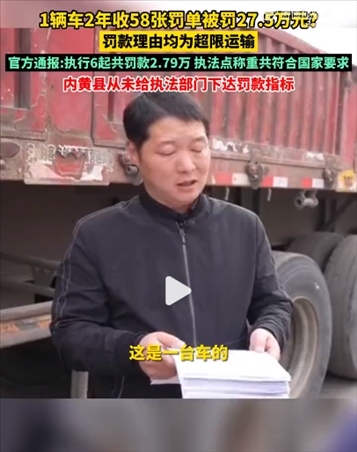 ·官方通報“貨車2年被罰27.5萬”:執(zhí)行6起共罰款2.79萬,內(nèi)黃縣從未給執(zhí)法部門下達(dá)罰款指標(biāo)。