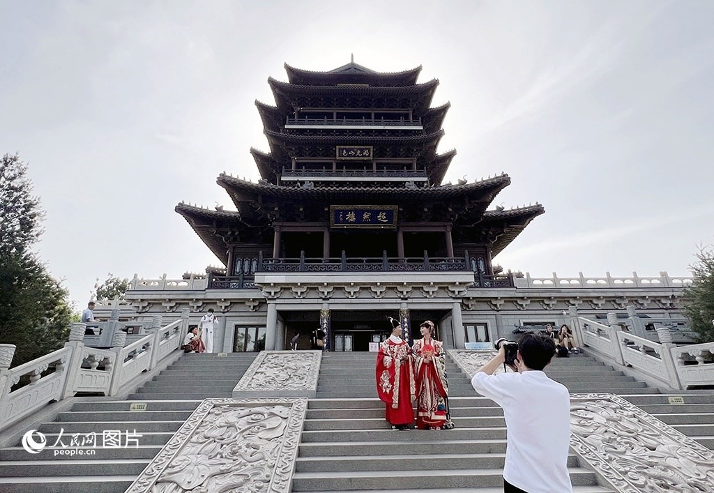 今年以來,濟南大明湖畔的“江北第一樓”超然樓因其獨特的人文氣息和景觀氣質(zhì)火爆網(wǎng)絡,成為爆火“出圈”的網(wǎng)紅打卡地。5月16日,在大明湖超然樓前,身穿古代服飾打卡拍照的游客絡繹不絕,在山色與湖光之間盡展古韻美感。人民網(wǎng)記者 劉祺攝