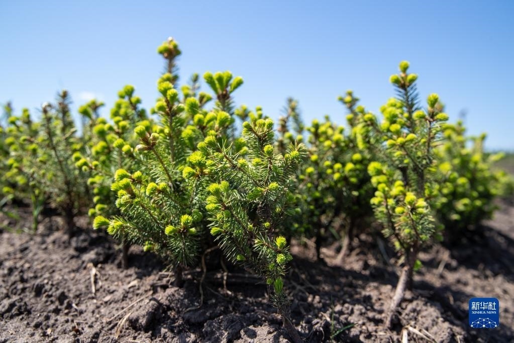 這是5月24日拍攝的伊春森工集團(tuán)上甘嶺林業(yè)局公司溪水林場內(nèi)栽種的紅松樹苗。