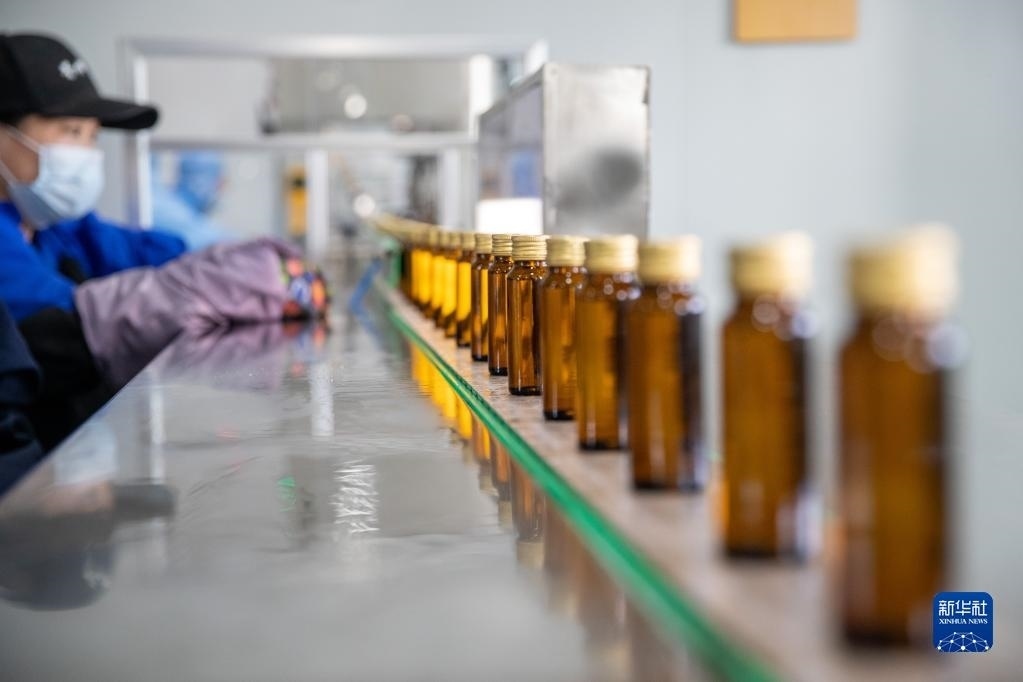 5月24日,在伊春菁樺生物科技有限公司生產(chǎn)車間內(nèi),工人在進(jìn)行樺樹汁飲品灌裝作業(yè)。