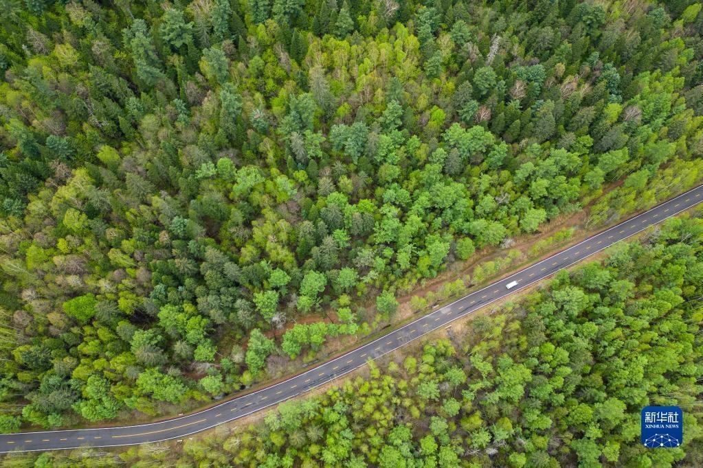 5月21日,園區(qū)車輛在五營國家森林公園內(nèi)穿行(無人機(jī)照片)。
