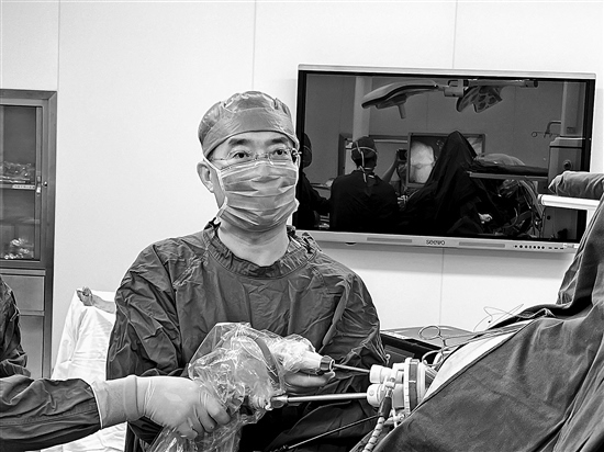 藺宏偉在進(jìn)行切胃減重手術(shù)。這樣的手術(shù)他每年會完成300多臺。受訪者供圖