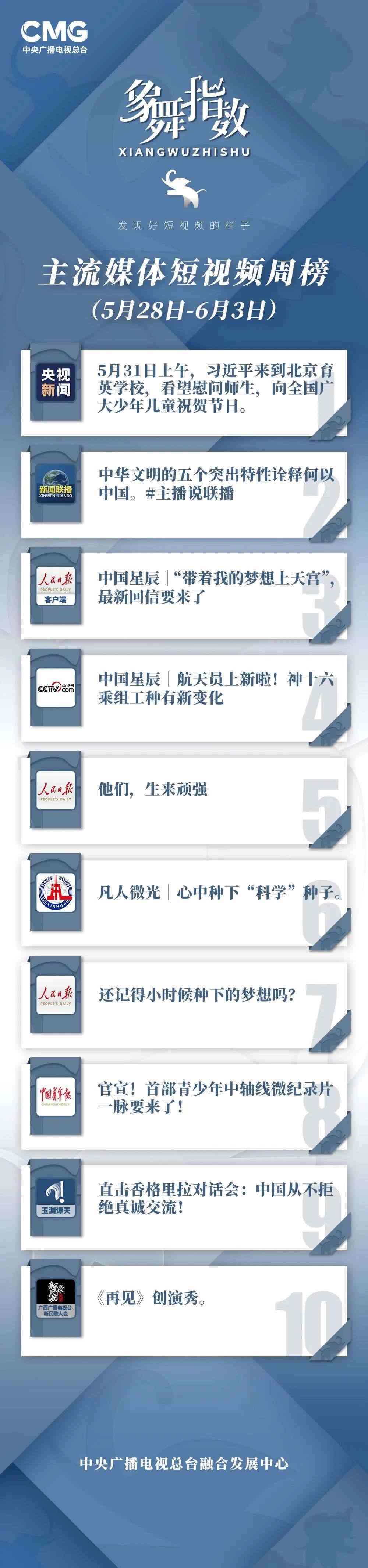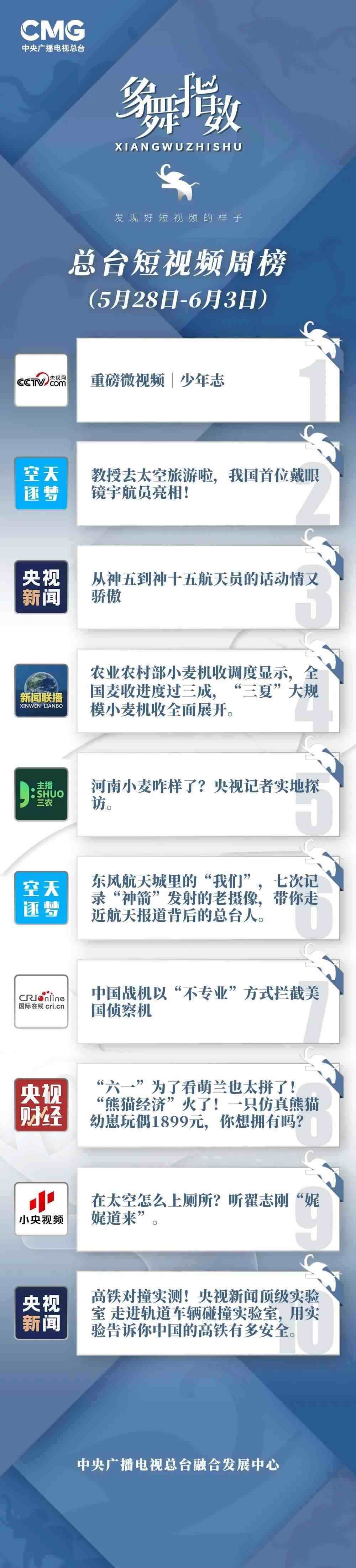 象舞指數(shù)|短視頻周榜(5月28日—6月3日)