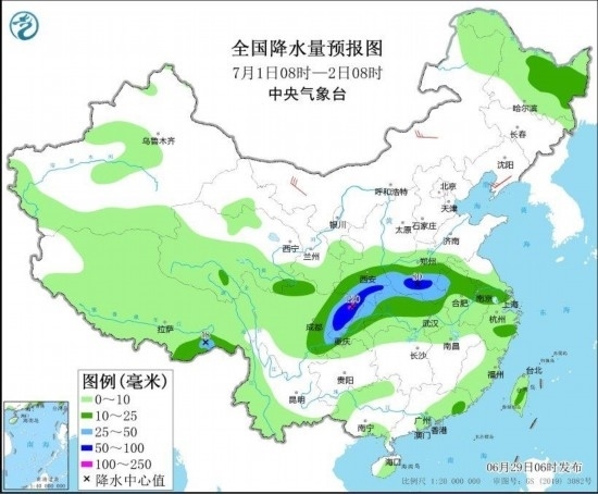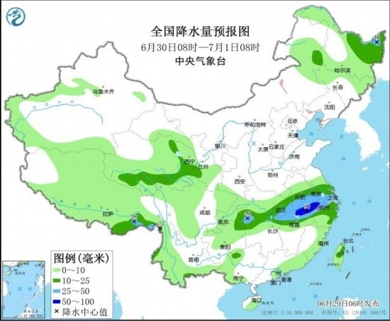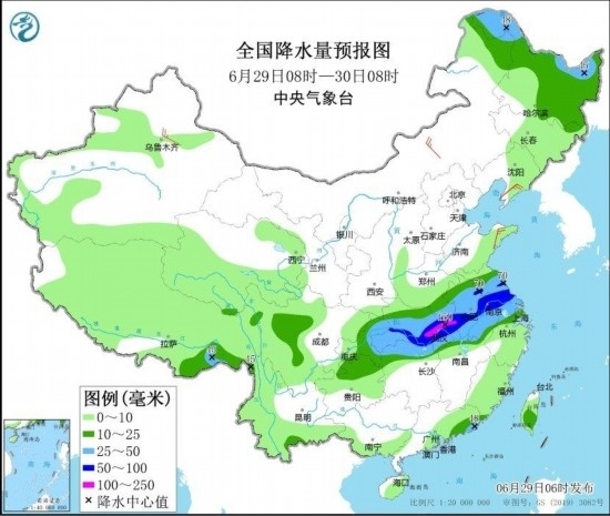圖4 全國降水量預(yù)報圖(6月29日08時-30日08時) 圖自中央氣象臺網(wǎng)站