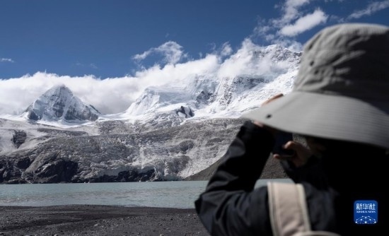 游客在拍攝薩普雪山(9月7日攝)。