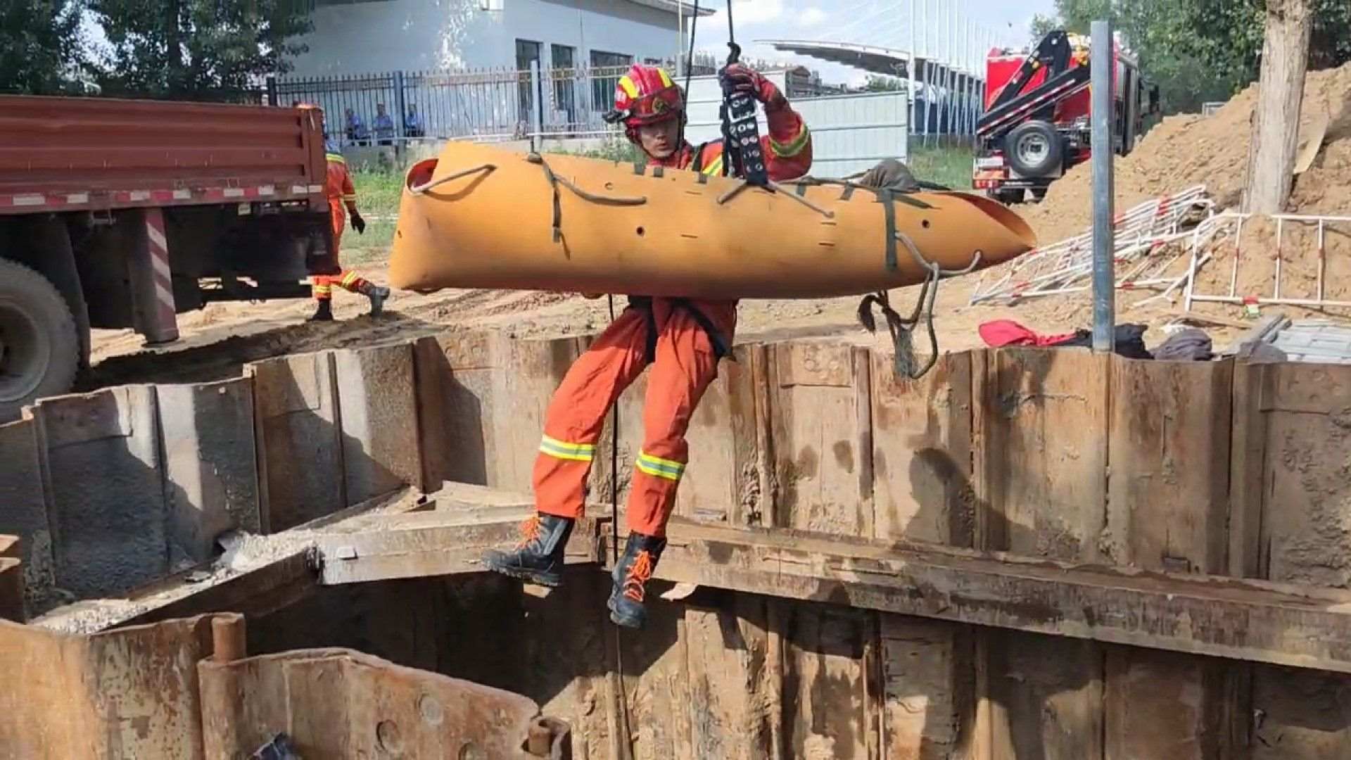 事故發(fā)生后,呼和浩特市消防救援支隊(duì)南二環(huán)路消防救援站趕赴現(xiàn)場(chǎng)處置。救援人員抵達(dá)事發(fā)工地后發(fā)現(xiàn),一名男子躺在一個(gè)深約4米、寬約3米的深坑中。該男子由于左手骨折,肩部受傷無(wú)法移動(dòng)。
