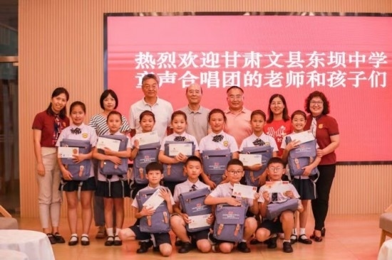 7月4日中午,在中國記協(xié)會客廳,文縣東壩童聲合唱團(tuán)的孩子們見到了他們熟悉的中國記協(xié)黨組書記、副主席劉思揚(yáng)爺爺。今年2月,劉思揚(yáng)爺爺專門來到文縣,走進(jìn)他們的排練廳,聆聽了他們即將在甘肅廣播電視總臺演出的曲目。他當(dāng)場說:“我被孩子們眼中的光深深地觸動(dòng)了。這是一種自信的、堅(jiān)毅的光。帶著這種光,無論你們將來走出大山,還是學(xué)成后回到山里建設(shè)家鄉(xiāng),這種自信和堅(jiān)毅的情愫都將伴隨你們終生。”今天孩子們都成了劉思揚(yáng)爺爺?shù)男】腿?。劉爺爺給孩子們講述了什么是記者、什么是記協(xié),鼓勵(lì)孩子們好好學(xué)習(xí),將來報(bào)效祖國。劉爺爺還為每個(gè)孩子準(zhǔn)備了滿滿一個(gè)大書包的各種禮物。孩子們排著演出隊(duì)形,為中國記協(xié)的老師們唱出了《大山里的孩子》,還有那首剛剛學(xué)會的、走進(jìn)央視錄音棚的《童心里的中國》: