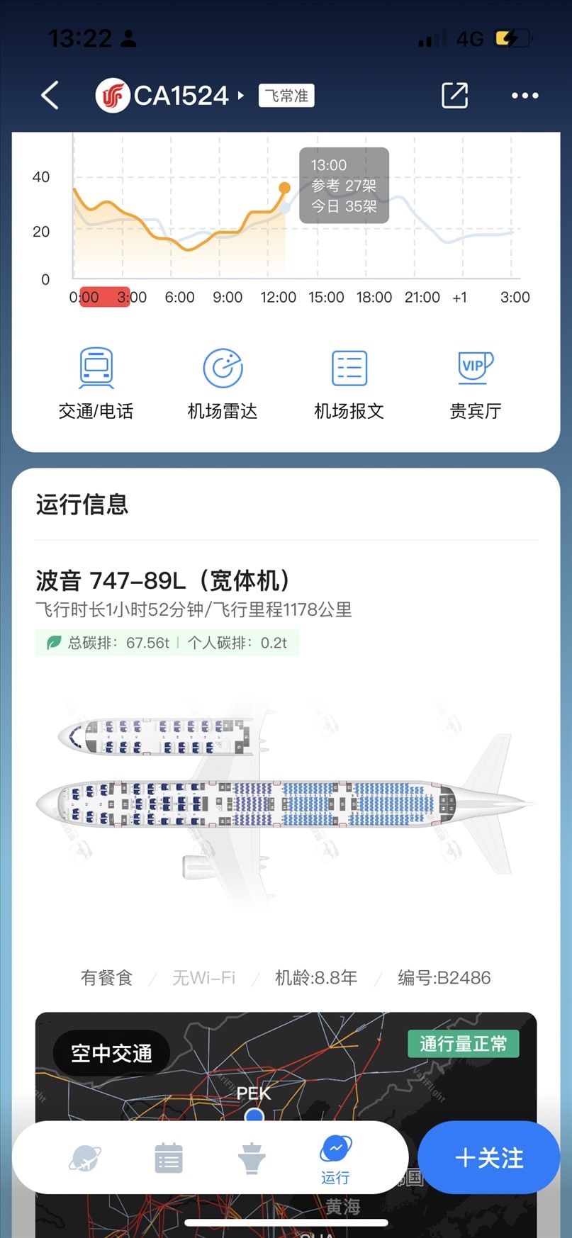 遭遇晴空顛簸后國(guó)航CA1524航班今天正常執(zhí)飛,機(jī)型換為波音747