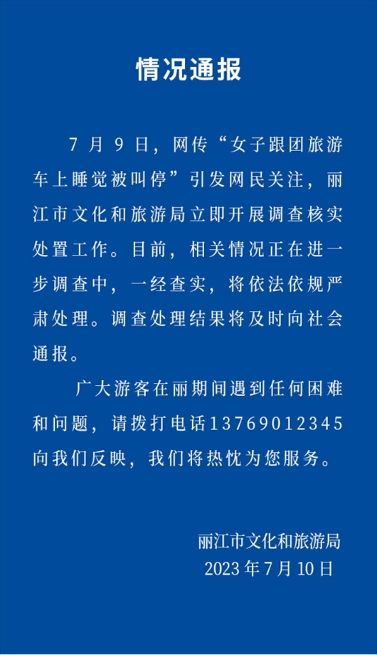 ·女子跟團(tuán)游車上睡覺被叫醒不許睡?麗江文旅局:立即調(diào)查。