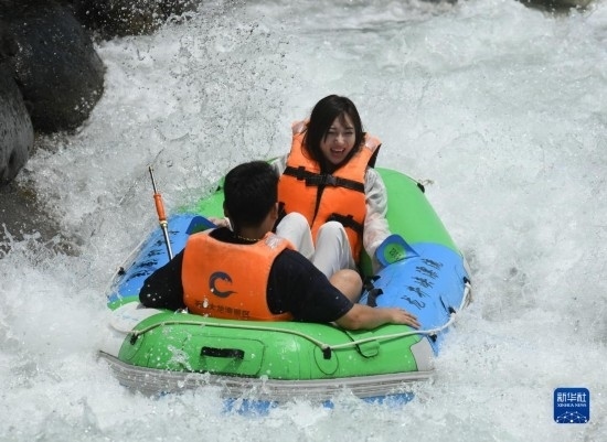 近日,浙江省杭州市持續(xù)晴熱高溫天氣,不少市民來到美麗鄉(xiāng)村體驗高山游、親水游。