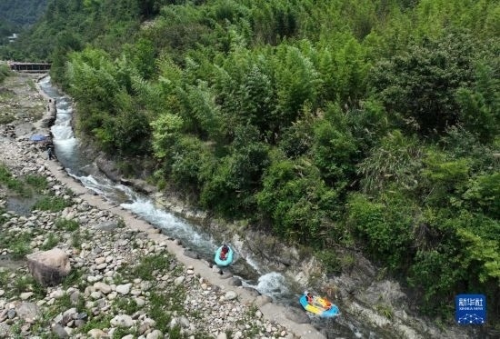 7月11日,人們在杭州臨安高虹鎮(zhèn)江南秘境游玩(無人機照片)。