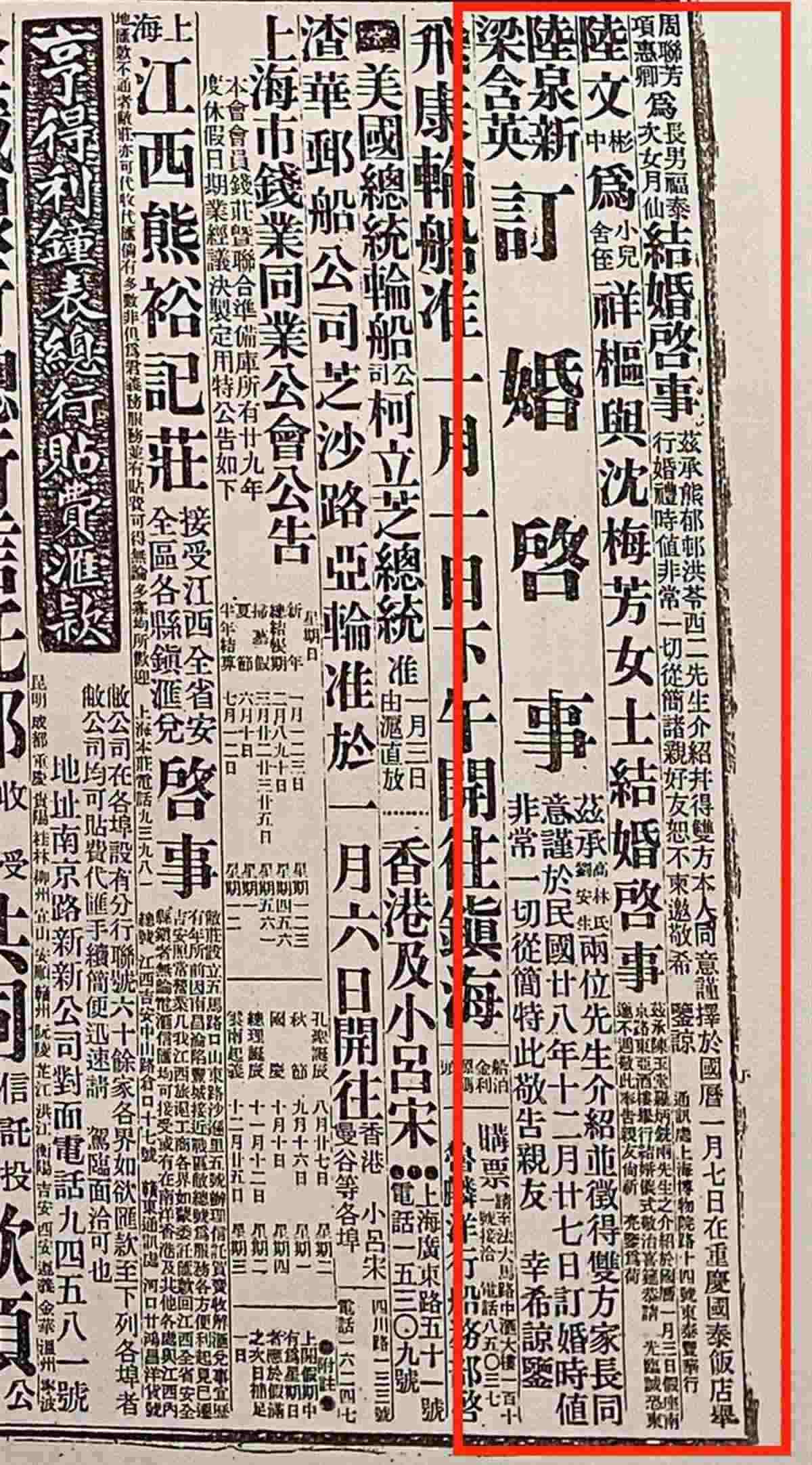 據(jù)了解,登報(bào)結(jié)婚最早在民國(guó)風(fēng)行。當(dāng)時(shí),婚姻法和婚姻登記制度并不完善,于是結(jié)婚時(shí)在報(bào)紙上公示成為一種約定俗成的習(xí)慣。一來(lái)知會(huì)了遠(yuǎn)近親友,二來(lái)有一定法律效力,日后可以作為憑證。三來(lái)報(bào)紙便于長(zhǎng)久保存,更具紀(jì)念意義。