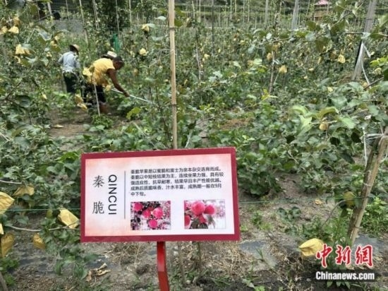 村民正在蘋(píng)果園中勞作 錢(qián)姣姣攝