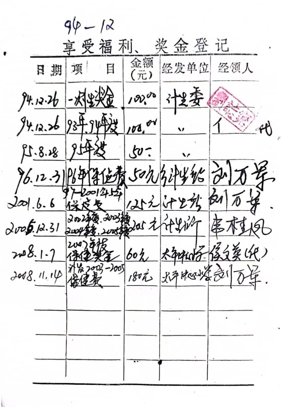 獨生子女費用發(fā)放的相關證明。圖/劉萬軍提供