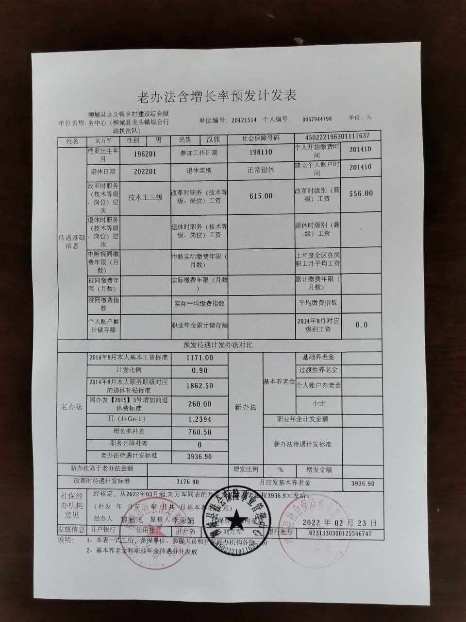 我是一個在職在編人員,我這里有一張《老辦法含增長率預發(fā)計發(fā)表》(根據(jù)表上信息,其參加工作日期為1981年10月,個人開始繳費時間為2014年10月),我的社保計算年限是從公務員的社保改革,也就是2014年開始算,相當于之前的工齡都是沒有計算在內(nèi)的。