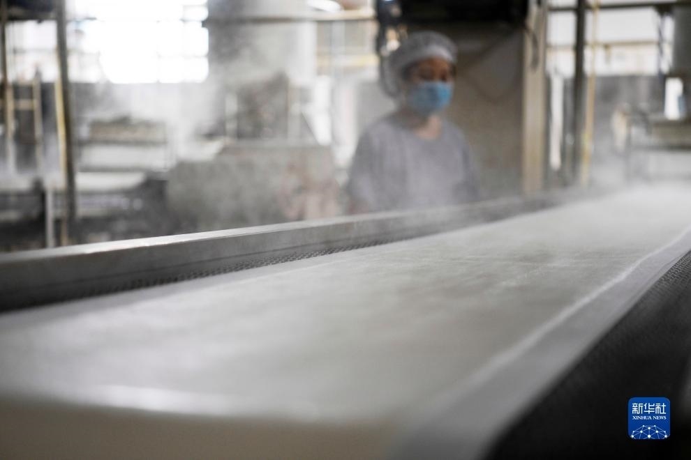 豆片是河北承德地區(qū)的傳統(tǒng)美食,以大豆為主要原料,經(jīng)過選豆、破豆、磨豆、煮漿、點鹵、揭片、煮片等工序加工而成。近年來,當(dāng)?shù)囟蛊髽I(yè)通過規(guī)模化生產(chǎn),提升豆片品質(zhì)和產(chǎn)量,積極對接省內(nèi)及北京、天津等地超市、農(nóng)產(chǎn)品市場,拓寬豆片銷售渠道,讓豆片香飄遠方,讓居民在家門口就業(yè)增收。