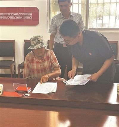 圖①:法官找時(shí)任村支書了解幫工情況。