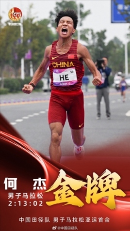 創(chuàng)造歷史!5日的杭州亞運會馬拉松賽場上,中國選手何杰勇奪金牌,這是中國隊在亞運史上首次獲得男子馬拉松金牌。
