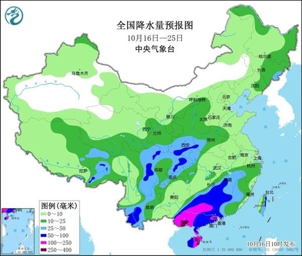 19日以后,隨著冷空氣南下,降水區(qū)域也將擴展到江南、華南等地。值得注意的是,華南地區(qū)由于水汽更充沛,再加上熱帶擾動影響,將成為強降雨中心。特別是廣西,暴雨或大暴雨將持續(xù)3至4天,這在常年10月中旬相當少見,當?shù)匦枳⒁夥婪冻掷m(xù)強降雨可能引發(fā)的次生災害。