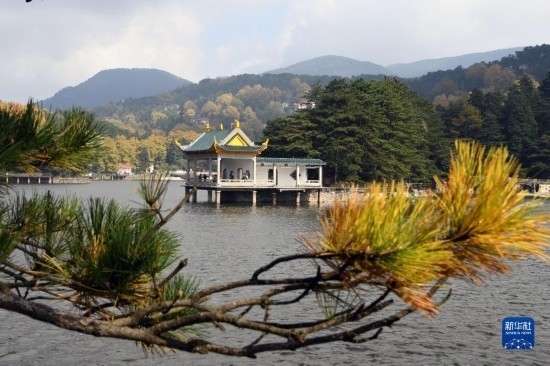 10月20日拍攝的廬山如琴湖秋景(無(wú)人機(jī)照片)。