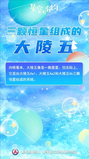 中國科學(xué)院紫金山天文臺科普主管王科超說,在人們?nèi)庋劭磥恚罅晡逯皇乔锛緰|北方向天空中一個遙遠(yuǎn)的亮點,像是一顆星星。但實際上,它是由大陵五Aa1、大陵五Aa2和大陵五Ab三顆恒星組成的系統(tǒng)。這三顆恒星被引力“束縛”在一起,共同組成大陵五這個三合星系統(tǒng)。系統(tǒng)之中三顆星的相對位置還會發(fā)生變化,并影響到大陵五的亮度。天文學(xué)上把這種亮度時常變化的恒星或恒星系統(tǒng)稱作變星。大陵五也是秋季星空著名星座英仙座中的第二亮星。