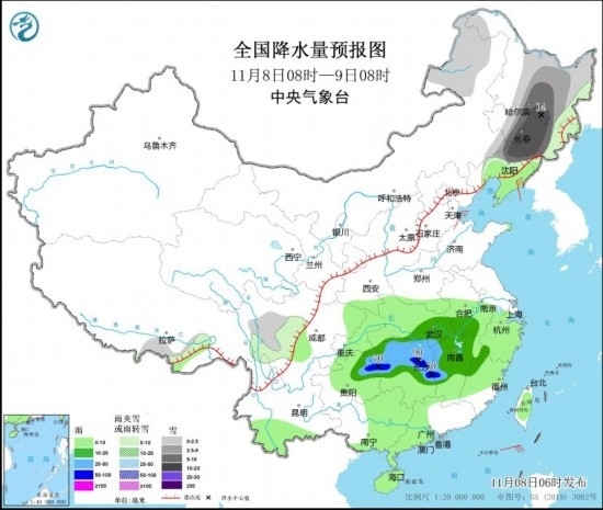 中新網(wǎng)11月8日電 據(jù)中央氣象臺(tái)網(wǎng)站消息,預(yù)計(jì)8日至9日,黑龍江中南部、吉林中西部、遼寧北部等地有暴雪和低溫冰凍災(zāi)害風(fēng)險(xiǎn),關(guān)注對(duì)交通運(yùn)輸、建筑設(shè)施安全、農(nóng)牧業(yè)、電力通信等的影響;湖南、江西、浙江、福建等地降雨較強(qiáng),注意防范次生災(zāi)害。