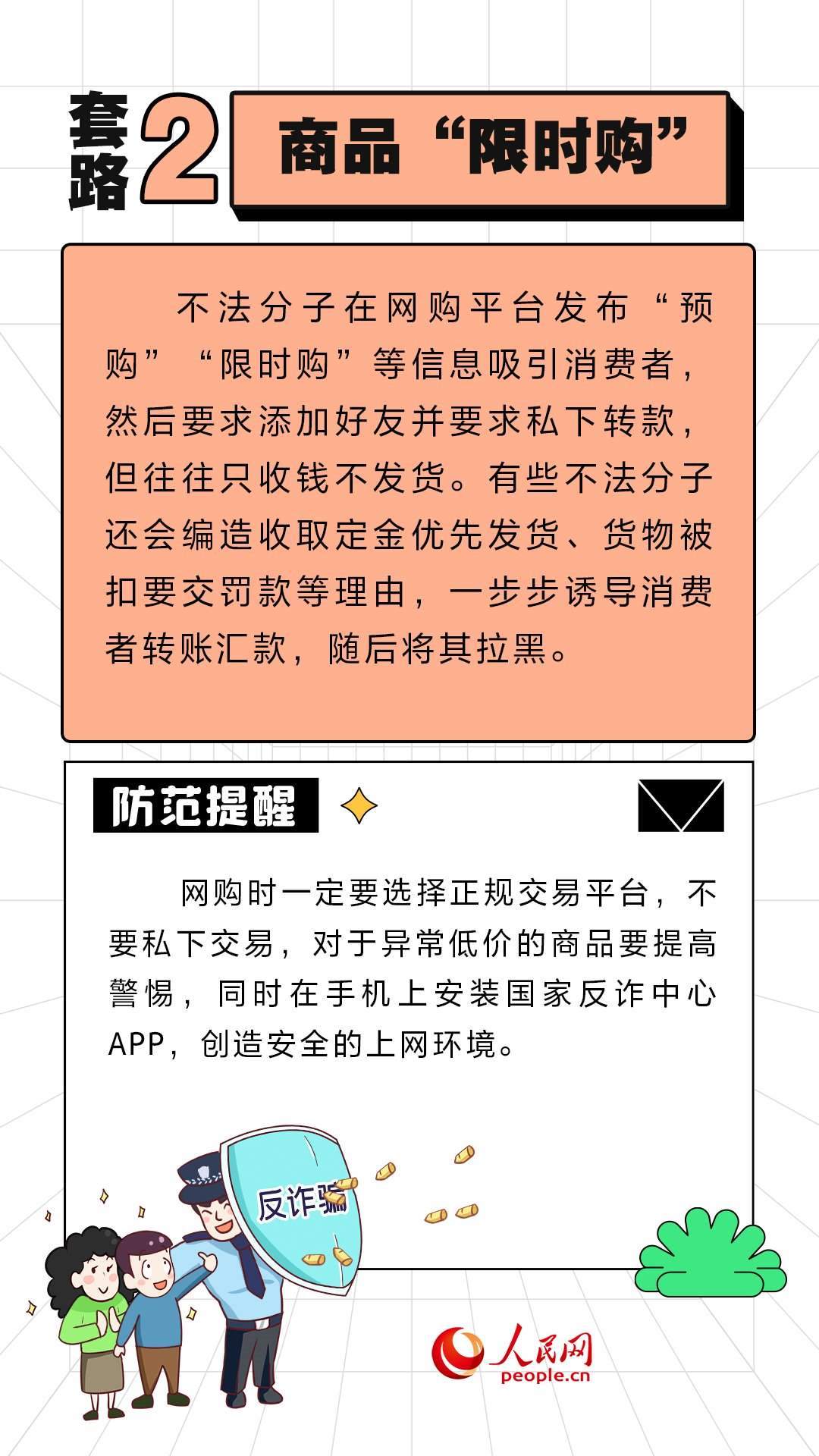 人民網(wǎng)北京11月10日電 (周靜圓)近期,“雙11”促銷活動(dòng)如火如荼地進(jìn)行中。不法分子也伺機(jī)而動(dòng),設(shè)置各式各樣陷阱。人民網(wǎng)“求真”欄目整理了六種常見的套路,提醒大家提高警惕,守好“錢袋子”。