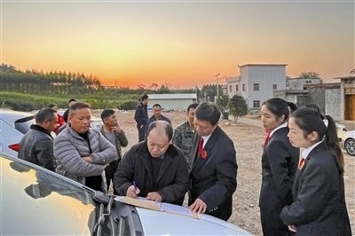 庭審結(jié)束后,承辦法官邀請中間人參與調(diào)解,雙方當事人最終達成和解協(xié)議,握手言和。在法院干警和當?shù)卮迕竦囊娮C下,原告以車當桌,當場手寫撤訴申請書,為靜謐祥和的鄉(xiāng)村添上了一道靚麗的“楓”景線。(記者 吳琪 通訊員 夏典)